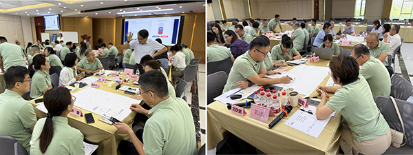 随后,各小组围绕四条核心工作条线,在培训老师带领下,进行了群策群力的热烈研讨,挖掘梳理出存在的问题,按照行动学习的理论及工具方法进行了去芜存精,明确重点问题及制定初步解决方案,不仅让团队成员清晰认识到自身工作的优势与短板,更激发了大家直面现状、挑战自我的决心。通过心情感受分享和关键词描述,团队氛围愈加开放透明,为后续的问题挖掘和解决创造了良好的组织氛围。