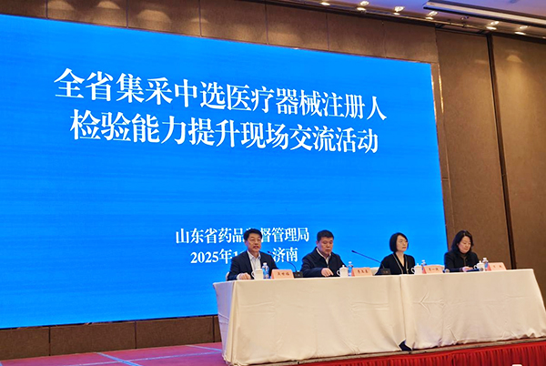 2025年11月20日,公司管理者代表、质量管理部总监刘信宏代表公司参加了在济南举办的全省集采中选医疗器械注册人检验能力提升现场交流活动。山东省药品监督管理局副局长李玉基、国家药品监督管理局医疗器械监管司监管一处处长李一捷、山东省医疗器械和药品包装检验研究院院长万敏、山东省药品监督管理局医疗器械监管处处长吴世福出席了本次活动。
