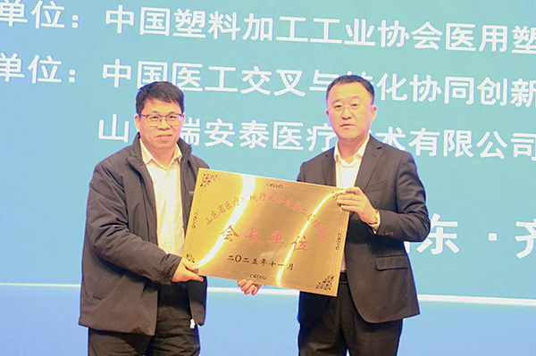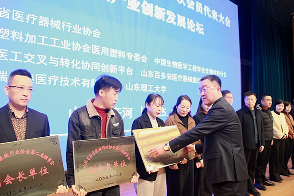 山东省医疗器械业协会会长龙经同志为副会长单位进行了现场授牌。