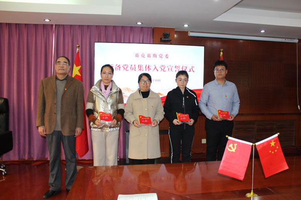 近日,经济南高新区齐鲁软件园发展中心综合党工委批准,赛克赛斯党委新接受四名同志为中共预备党员。2020年11月30日,公司党委在党员活动室集体举行了庄严的预备党员入党宣誓仪式活动,部分老党员也参加了此次活动。赛克赛斯党委副书记张传军同志出席会议。