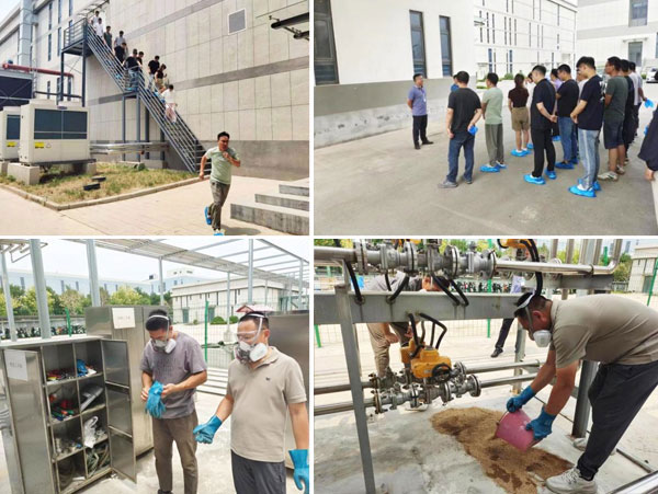 组织相关部门开展“火灾爆炸事故专项应急预案”和“危化品泄漏专项应急预案”的应急演练,保障在突生火灾爆炸事故和危化品泄漏事故时,公司及员工能够及时控制事态扩大,防止事故蔓延,进一步增强应对火灾爆炸事故和危化品泄漏事故的快速反应能力、应急处理能力、协调作战和紧急逃生能力。