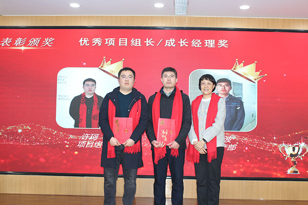 公司的发展离不开每一位员工的辛勤付出。公司领导分别上台对获得年度新人奖、优秀员工奖、先进工作者、优秀项目组长/成长经理奖的员工进行颁奖;对获得年度创新奖/年度技术改进奖、优秀团队奖的部门和团队进行颁奖;为本年度在公司工作满10年、满20年的员工颁发长期贡献奖。