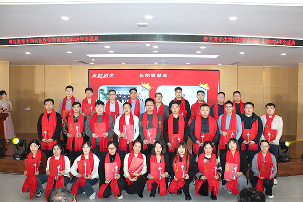 时光的脚步走过了2024年,留下了不可磨灭的足迹。2025年1月21日,赛克赛斯生物科技股份有限公司2024年度年终盛典在孙村厂区礼堂举行,公司全体员工欢聚一堂,共同回顾满载收获的2024年,一起展望充满希望的2025年!集团董事长邹方明、集团副总裁柏桓、公司总经理戴永强及全体员工参加年终盛典活动。