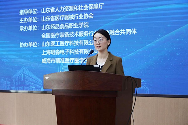 开幕式由全国医疗装备技术服务行业产教融合共同体副秘书长、山东药品食品职业学院医疗器械系主任唐睿主持。