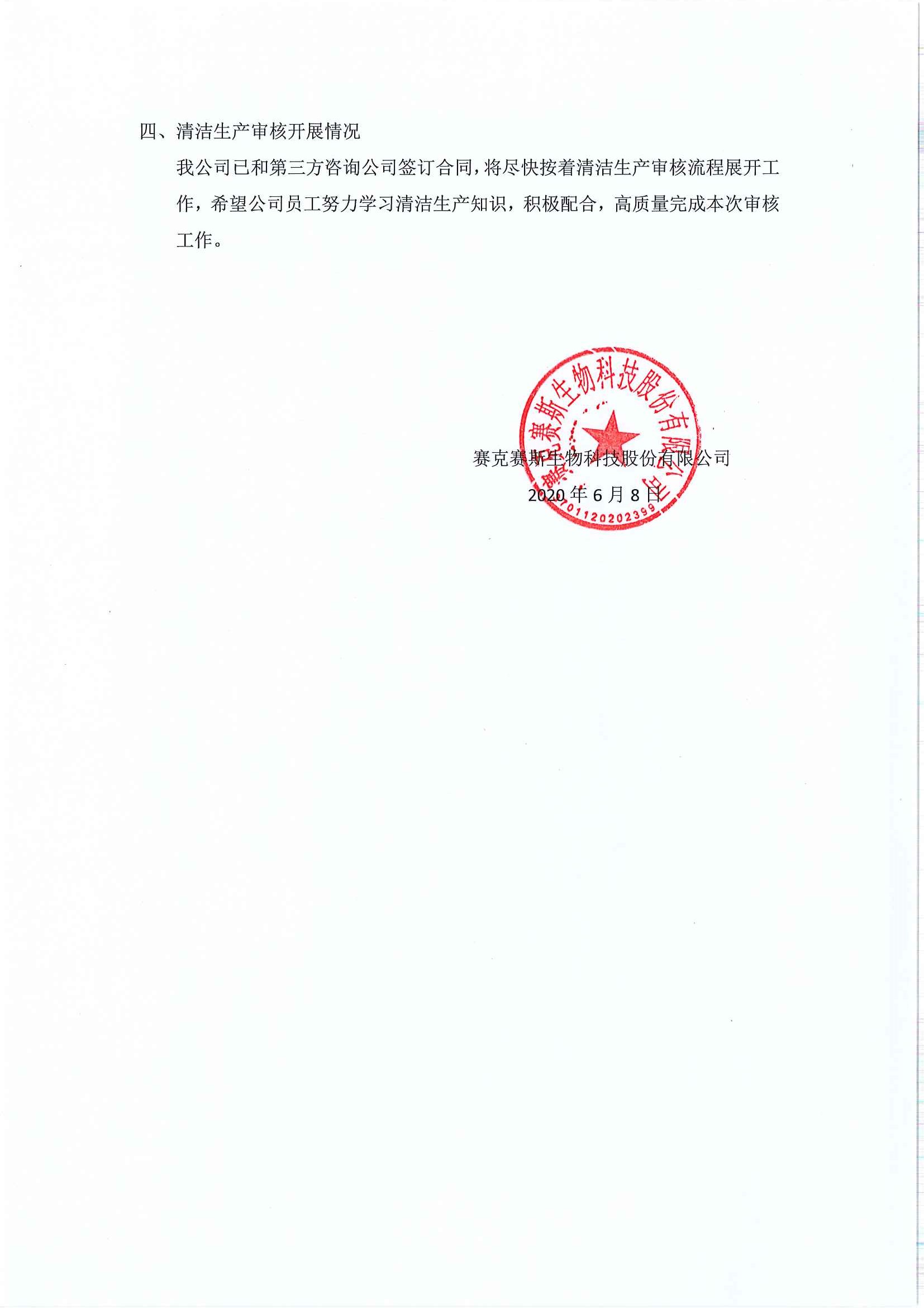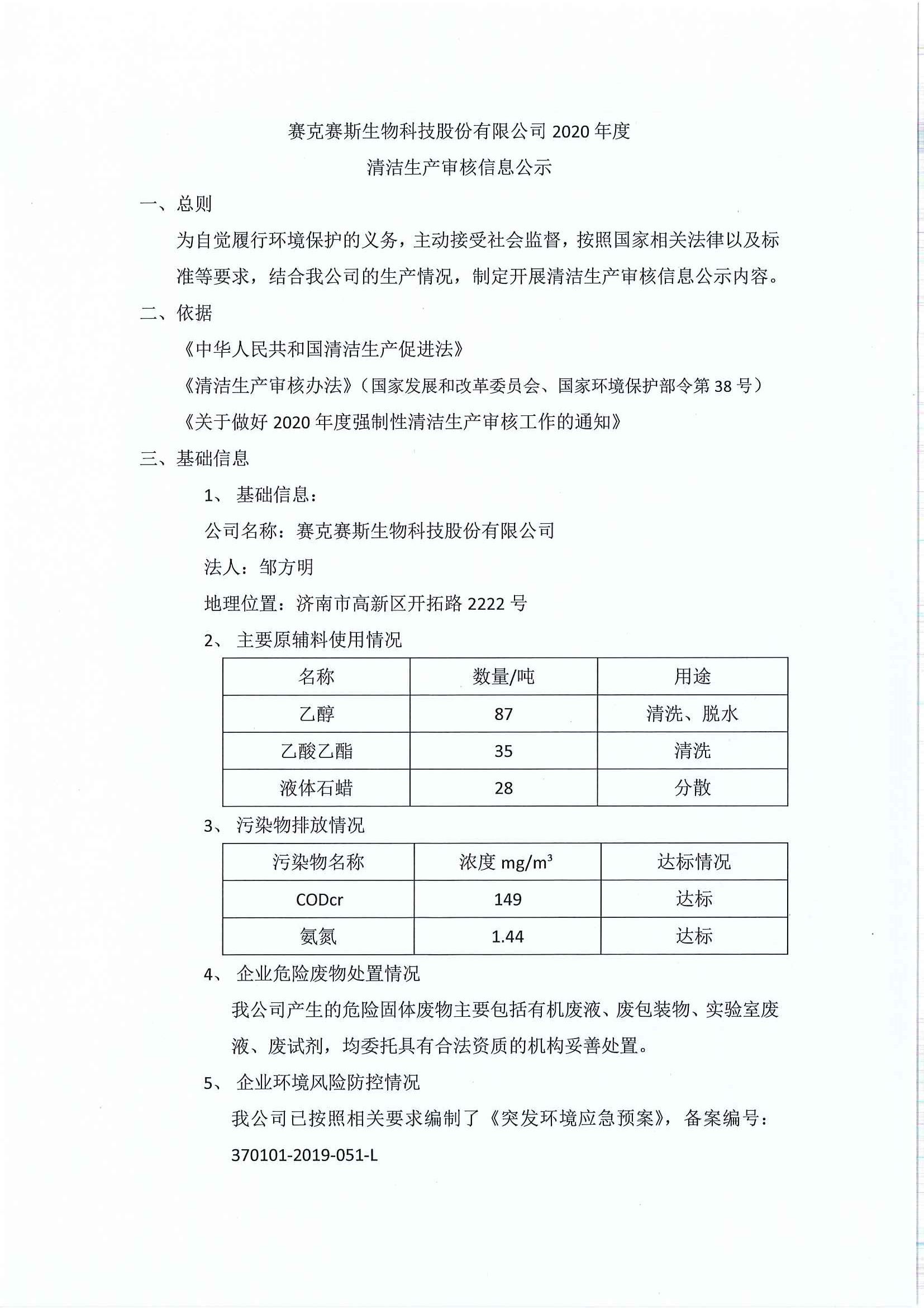 赛克赛斯生物科技股份有限公司2020年度 清洁生产审核信息公示