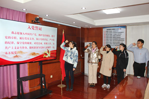 近日,经济南高新区齐鲁软件园发展中心综合党工委批准,赛克赛斯党委新接受四名同志为中共预备党员。2020年11月30日,公司党委在党员活动室集体举行了庄严的预备党员入党宣誓仪式活动,部分老党员也参加了此次活动。赛克赛斯党委副书记张传军同志出席会议。