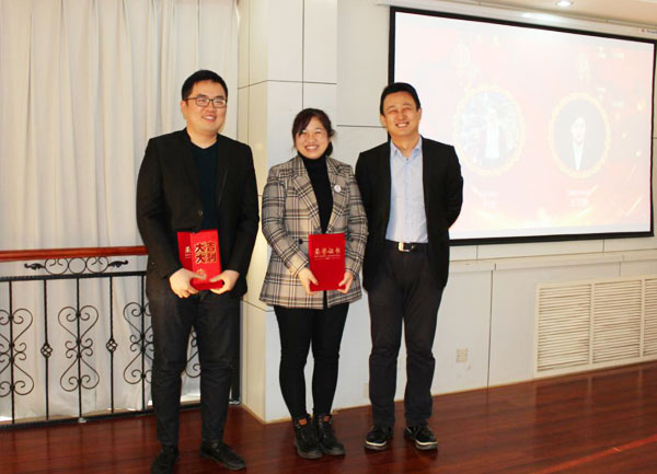 按照议程安排,首先由公司总经理助理兼人力资源总监刘丽宣读公司表彰决定。随后由公司领导分别上台对获得年度新人奖、优秀员工奖、先进工作者、优秀项目组长/成长经理奖的员工进行颁奖;对获得年度创新奖/年度技术改进奖、优秀经销商、优秀团队奖的部门和团队进行颁奖;为本年度在公司工作满10年的员工颁发长期贡献奖。