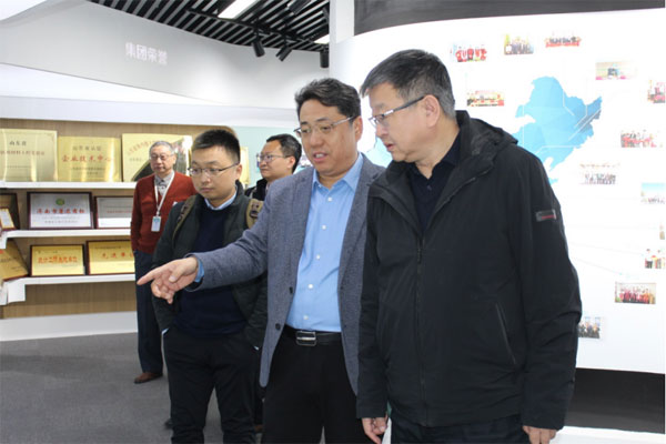 在公司展厅,邹方明董事长向唐玉国所长一行介绍了公司的发展历程、主营业务、产品研发、技术创新、战略布局等相关情况。