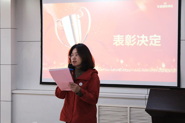 (总经理助理兼人力资源总监刘丽宣读表彰决定)