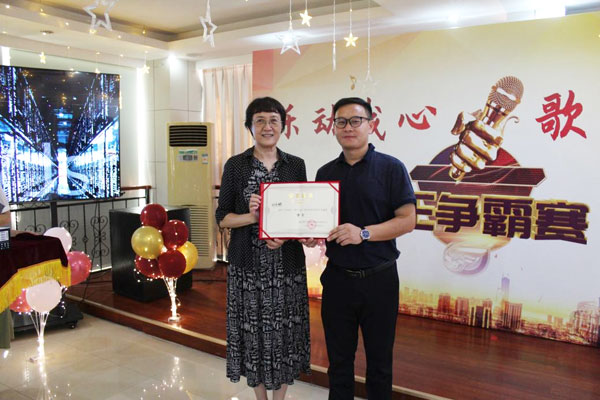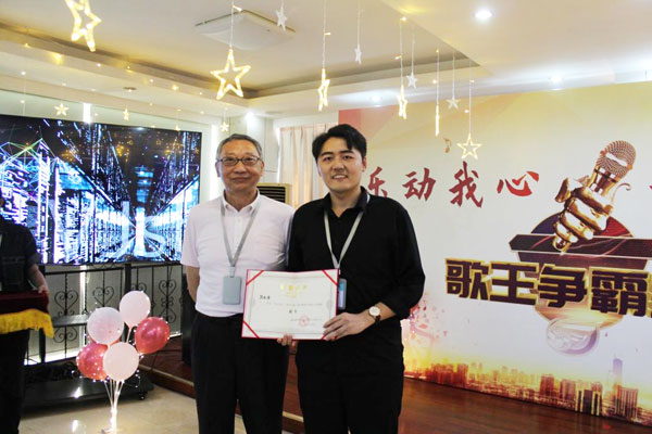 所有选手演唱结束后,现场人员进行记名投票,最终决出冠军为生产部许富超、亚军为技术中心陈光泽、季军为器械市场部刘庆鹏。在热烈的掌声中,技术中心主任夏毅然、总经理柏桓、董事长邹方明分别为季、亚、冠军颁发获奖证书及奖品,3位选手分享获奖感言。