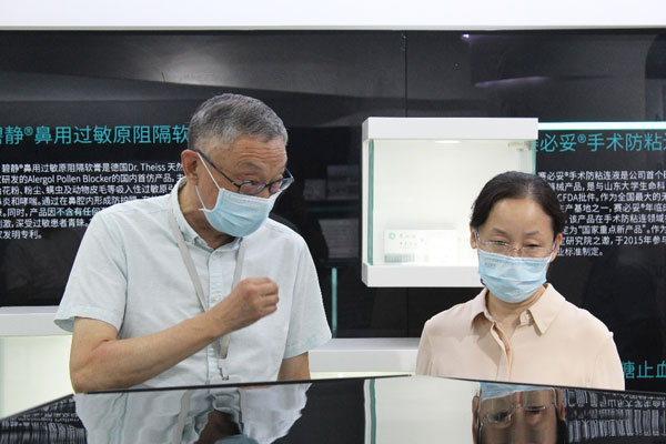 来访领导首先参观了企业展厅,柏总对企业发展历程及产品研发领域进行详细介绍,重点讲解了创新产品赛脑宁的开发历史和应用前景。