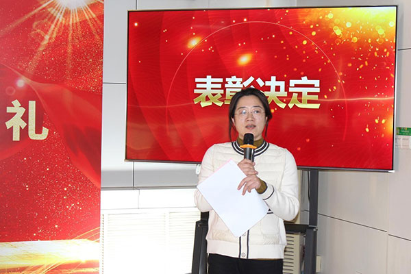 (总经理助理兼人力资源总监刘丽宣读表彰决定)