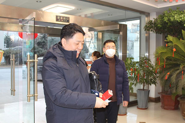 公司董事长邹方明、总经理柏桓等公司领导提前来到公司,在办公楼前迎接每一位员工,将诚挚的新春祝福送给大家。