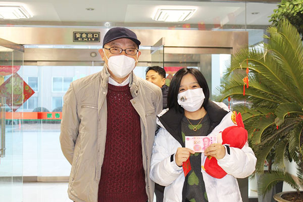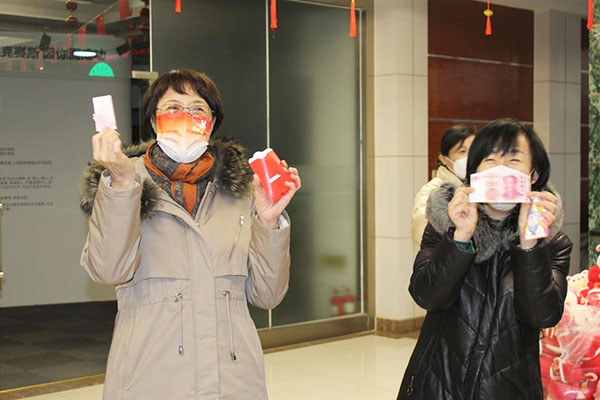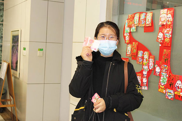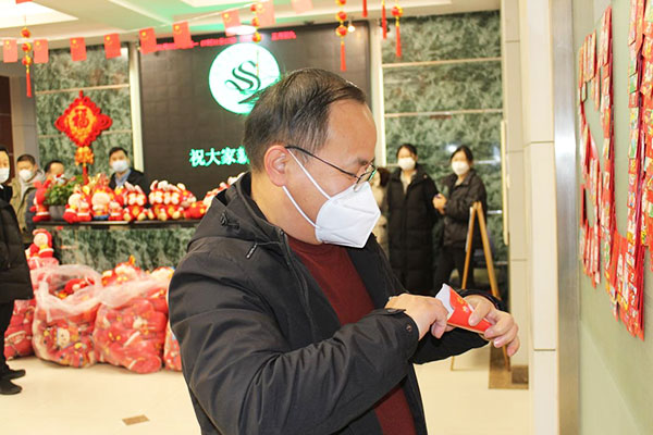 一楼大厅内进行着简约而又喜庆的“开年利是”活动,映入眼帘的便是SUCCESS字样的红包墙。每一位员工在红包墙上抽取一个红包,新的一年开门见喜,鸿运当头;领取一个兔年吉祥物,开启兔年征程,今年必定前“兔”似锦,事业必定“兔”飞猛进。
