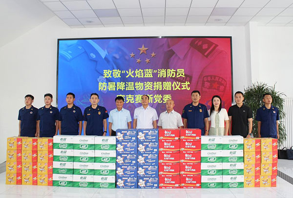 2023年7月7日,赛克赛斯“致敬‘火焰蓝’消防员 防暑降温物资捐赠仪式”在济南高新区消防救援大队举行。赛克赛斯党委副书记张传军,济南高新区消防救援大队党委书记、政治教导员王磊,党委副书记、大队长林振参加防暑降温物资捐赠仪式。济南高新区齐鲁软件园万达片区党委党建指导员宋星鹏、韩增强,党建专员马箐出席本次活动。